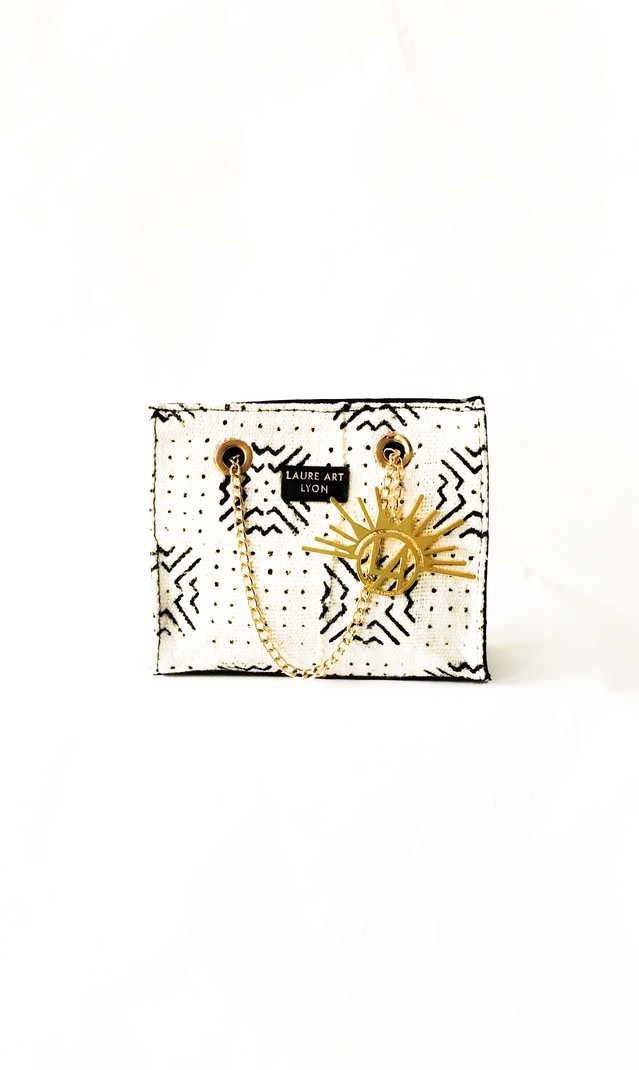 Signé de la maison Laure Art, ce petit sac en cuir noir et tissu Bogolan Africain vous séduira par son élégance. Dotée d’une hanse , elle peut être portée à l’épaule pour plus de mobilité.