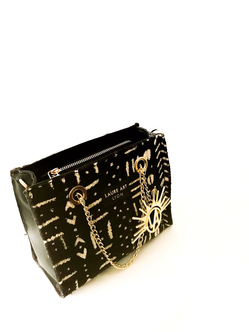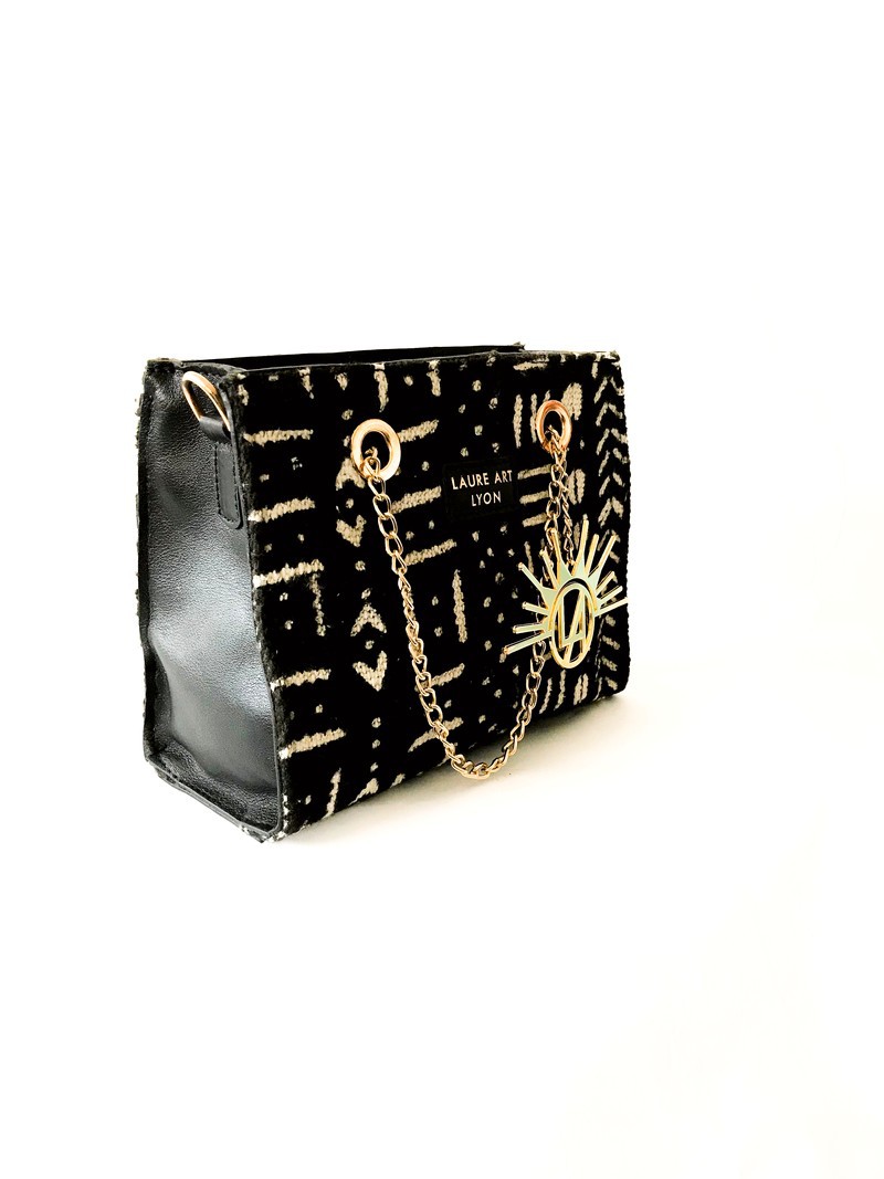 Signed by the Maison Laure Art, this small bag in black leather and African Bogolan fabric will seduce you with its elegance. With a handle, it can be worn on the shoulder for more mobility. Zipper inside pocket Calfskin Several colors available Measures: length 20cm width 9cm height 16cm OUR MANUFACTURING: Our captivating collection of handbags is an artisanal, authentic and traditional manufacture, entirely handmade in genuine leather, by passionate craftsmen. YOUR PAYMENT IS SECURE: By ordering LaureArt.com, your payment is 100% secure, your delivery is guaranteed, your item is up to standard, an after-sales service is at your disposal 7 days a week and you benefit from a 15 days as required by law. OUR GUARANTEE: Buying items online can be intimidating, so we want you to realize that there is absolutely no risk in buying from us and trying. If you don't like it, an exchange, a credit or a refund will be offered. NEED HELP ? If you need help, please contact us either by email or by phone on 0641827623
