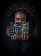 Signé de la maison Laure Art, ce petit sac en cuir noir et tissu Bogolan Africain vous séduira par son élégance. Dotée d’une hanse , elle peut être portée à l’épaule pour plus de mobilité.