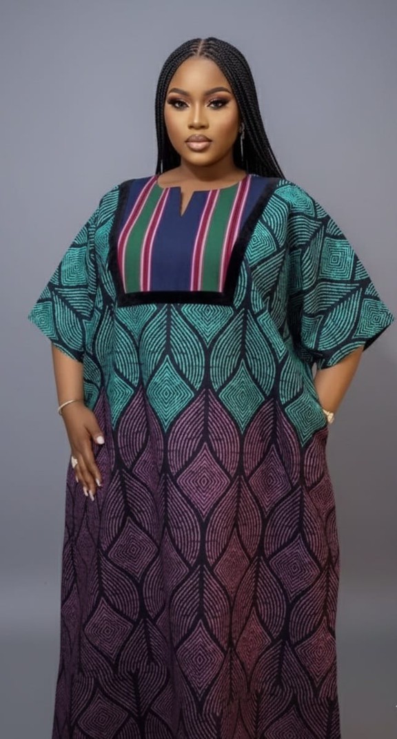This Regal Ombré Batik Kaftan is a striking masterpiece of artisanal craftsmanship, meticulously tailored from high-quality, breathable cotton that provides a structured yet graceful drape for all-day comfort. The garment features a captivating ombré transition, blending deep teal and emerald top tones into a rich burgundy base, all overlaid with a complex, hand-dyed geometric leaf motif. The design is anchored by a sophisticated rectangular yoke featuring traditional vertical striping in navy, forest green, and wine, framed by a plush black velvet trim that adds a luxurious, tactile dimension. Its generous, floor-length silhouette and wide kimono-style sleeves make it an impeccable choice for high-profile cultural events, elegant family celebrations, or upscale evening socials where modest sophistication is key. Whether you are hosting a formal dinner or attending a gala, this kaftan ensures a majestic and artistic presence that beautifully bridges the gap between traditional heritage and modern luxury.