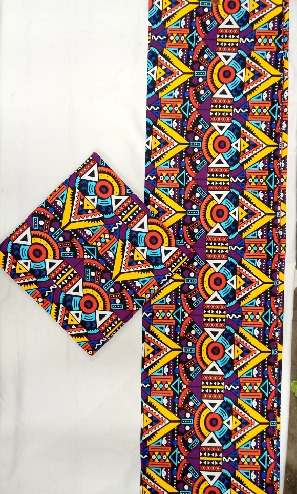 Turn heads with this bold African-inspired print, featuring a vibrant fusion of purple, yellow, teal, orange, and red geometric motifs that create a striking tribal aesthetic—perfect for fashion, décor, or accessories that demand colour, culture, and confidence.