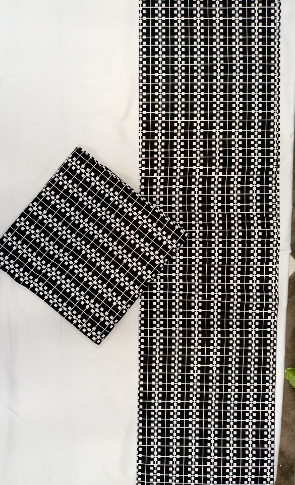 This monochrome geometric cotton fabric features an intricate black-and-white grid pattern with subtle wavy lines that create a modern, sophisticated look; perfect for making dresses, shirts, décor pieces, and accessories that stand out with clean, timeless style.