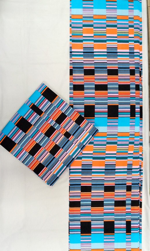 This vibrant cotton fabric bursts with energy through its bold turquoise, orange, black, and multicolour stripe pattern arranged in a modern geometric layout, making it perfect for standout clothing, decor, or crafts. The soft, breathable cotton ensures comfort and durability, while the striking colour contrasts add a lively, contemporary touch to any project.