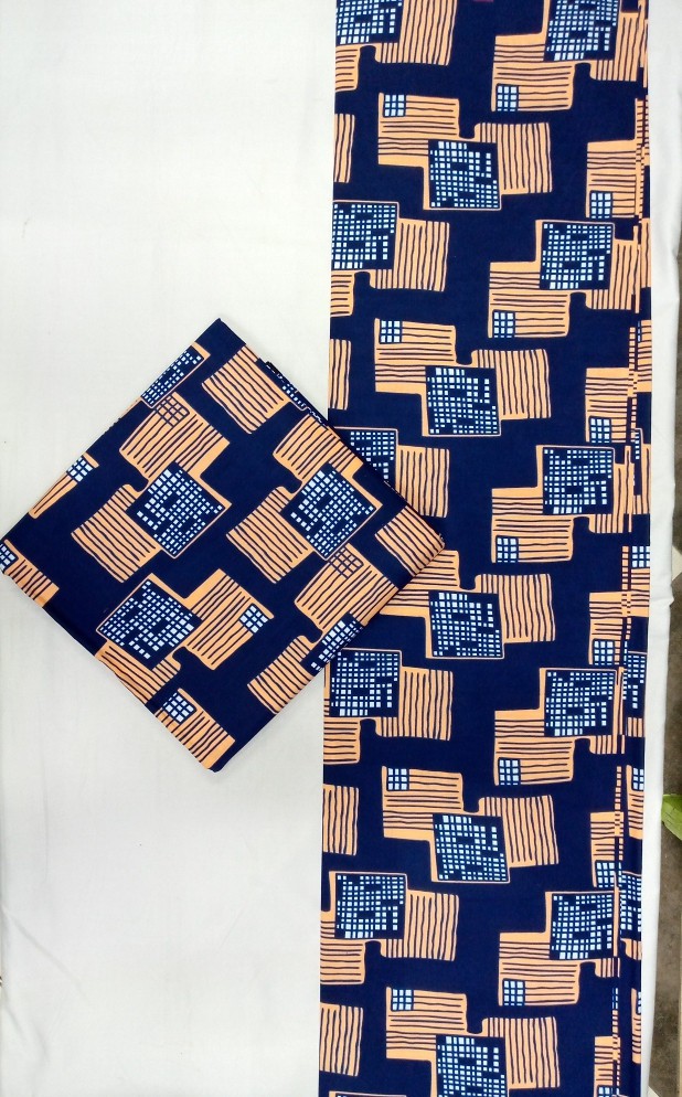 This elegant cotton fabric features a modern geometric patch design in deep navy, soft peach, and dotted sky-blue squares, creating a bold yet refined look perfect for dresses, shirts, skirts, and creative décor projects; its smooth texture, vibrant print clarity, and versatile colour palette make it an ideal choice for anyone seeking stylish, easy-to-work-with material.