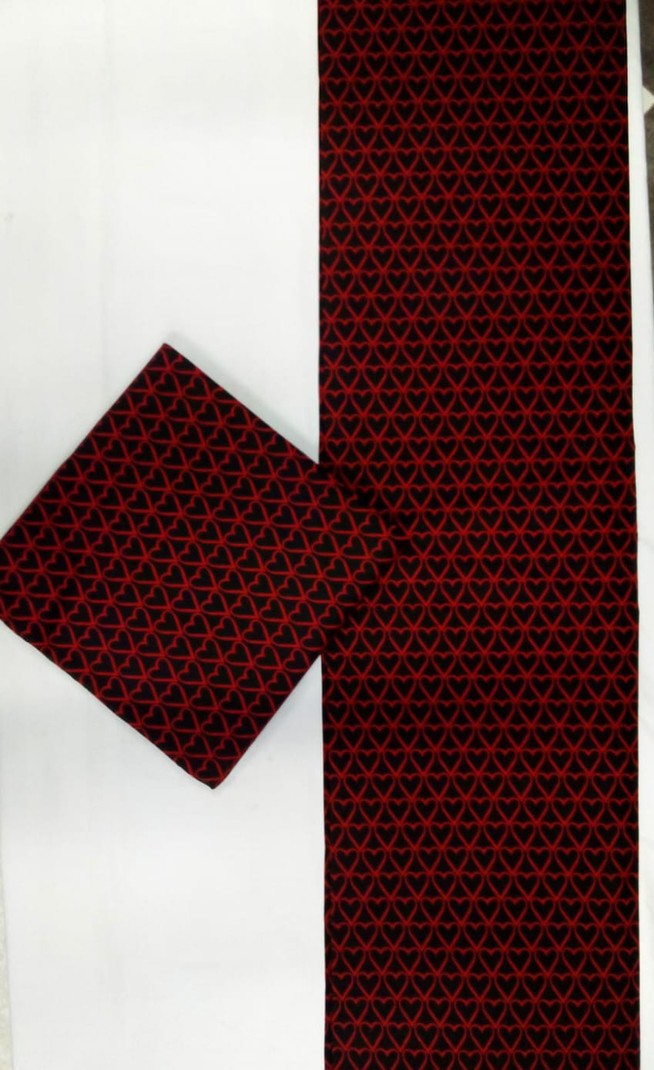 Bold and romantic, this premium cotton fabric features a striking pattern of interlinked red hearts set against a deep black background—creating a clean, modern, and expressive look. Its soft, breathable texture and vibrant colourfast print make it perfect for dresses, shirts, crafts, décor accents, and standout fashion pieces that carry a touch of charm and elegance.