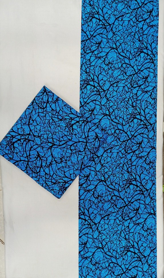 Electric blue spreads across the fabric like a glowing night sky tangled with inky, lightning-thread silhouettes—an energetic web that feels alive with motion. The intricate black lines twist and branch in every direction, creating a bold, modern texture that instantly catches the eye. Perfect for statement pieces that shimmer with confidence and a touch of mystery.