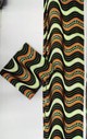 Waves of black, citrus orange, and cool lime ripple across the fabric like a rhythm you can almost hear—bold curves, playful movement, and a splash of retro charm all flowing together. The pattern feels alive, a kinetic dance of colour perfect for anyone who loves their style with a little swagger and a lot of personality.