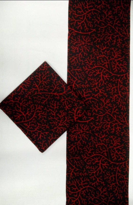 Red veins glow against a deep black backdrop, forming an intricate, branching pattern that feels bold, mysterious, and irresistibly dramatic. The design flows like living circuitry or illuminated roots, giving the fabric an edgy elegance perfect for standout fashion and statement décor.