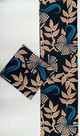 Soft beige leaves and sweeping blue strokes dance across a velvety dark base. With its graceful movement and airy dotted details, this print feels both soothing and sophisticated — a dream for flowing garments.