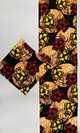 A lively cotton fabric with flower-filled circular motifs in warm yellow, orange, and deep red tones on a black base. Bright, expressive, and beautifully detailed — ideal for dresses, matching sets, and statement tailoring.