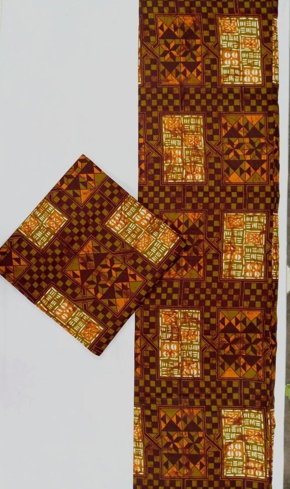 A warm brown checkered pattern framed with golden geometric tiles. Earthy, structured, and classic — beautifully balanced for timeless creations.