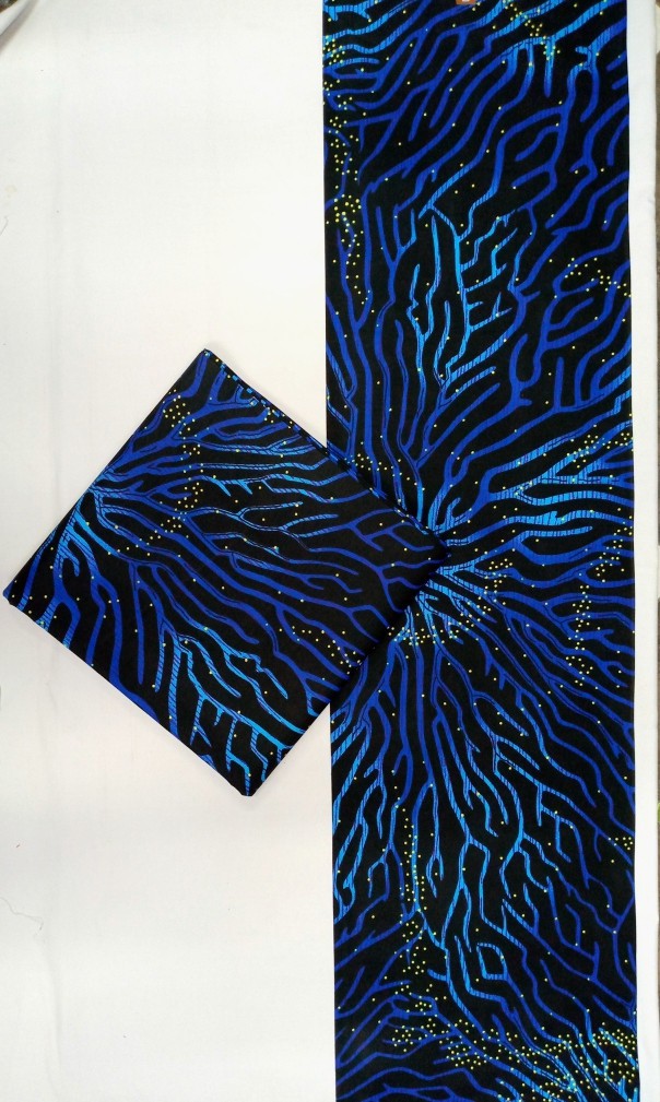 A striking cotton fabric alive with electric-blue river lines flowing over a deep black base, dotted with tiny golden sparks for subtle shimmer. Bold, modern and fluid, this print brings movement to every outfit while staying soft, breathable and easy to sew—perfect for standout dresses, skirts, shirts or creative accessories.