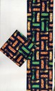 A textured brick-style cotton print featuring layered rectangles in warm peach, teal and caramel set against midnight navy. The pattern delivers a modern, artistic edge with a handcrafted feel, ideal for contemporary dresses, structured skirts, bold shirts and eye-catching accessories.