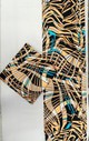 Sweeping black linework cuts across tan and teal accents, forming an energetic, abstract pattern full of motion and graphic appeal. The layered strokes bring bold expression to apparel, accessories, and contemporary home styling.
