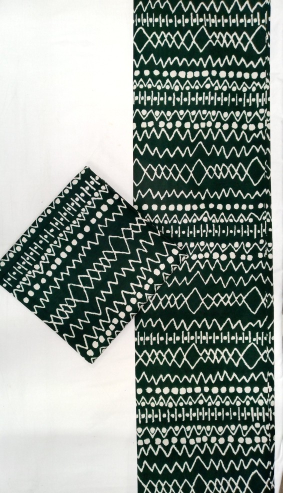 A striking deep-green cotton print brought to life with crisp white zigzags, dots and rhythmic linework arranged in horizontal bands. Simple, bold and effortlessly stylish, it’s a versatile pattern that works beautifully for both standout garments and modern home accents.