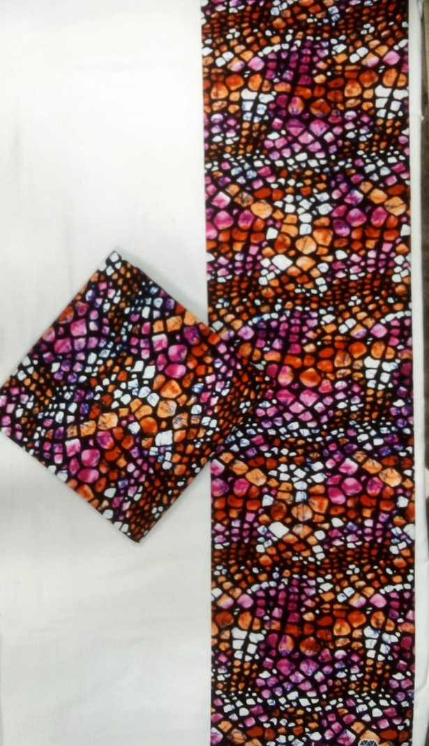 This vibrant Ankara print bursts with fiery orange, deep magenta, and rich plum tones arranged in an organic mosaic pattern that feels lively and bold. Its textured, stone-like motif creates a dynamic visual effect, making it perfect for standout dresses, skirts, shirts, or accessories that command attention. Soft, durable, and easy to sew, this fabric brings colour, movement, and energy to any creation—ideal for makers who love prints that speak with confidence.
