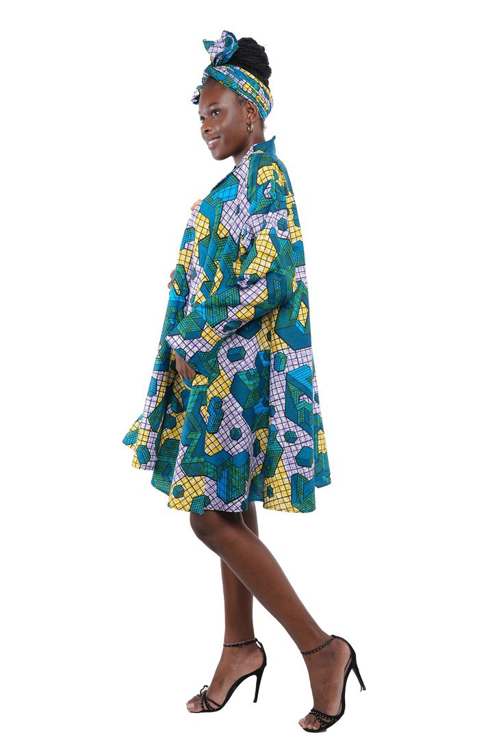 Upgrade your wardrobe with our stylish Toggle Button Ladies Dress! Made from 100% cotton fabric, this midi/short dress features 2 convenient pockets and comes with a matching head wrap. Crafted from a soft, breathable fabric, this dress offers a flattering fit while providing ultimate comfort. The standout feature is the unique toggle button detailing, which adds a modern twist to a timeless design.Go for comfort, convenience, and style all in one dress.