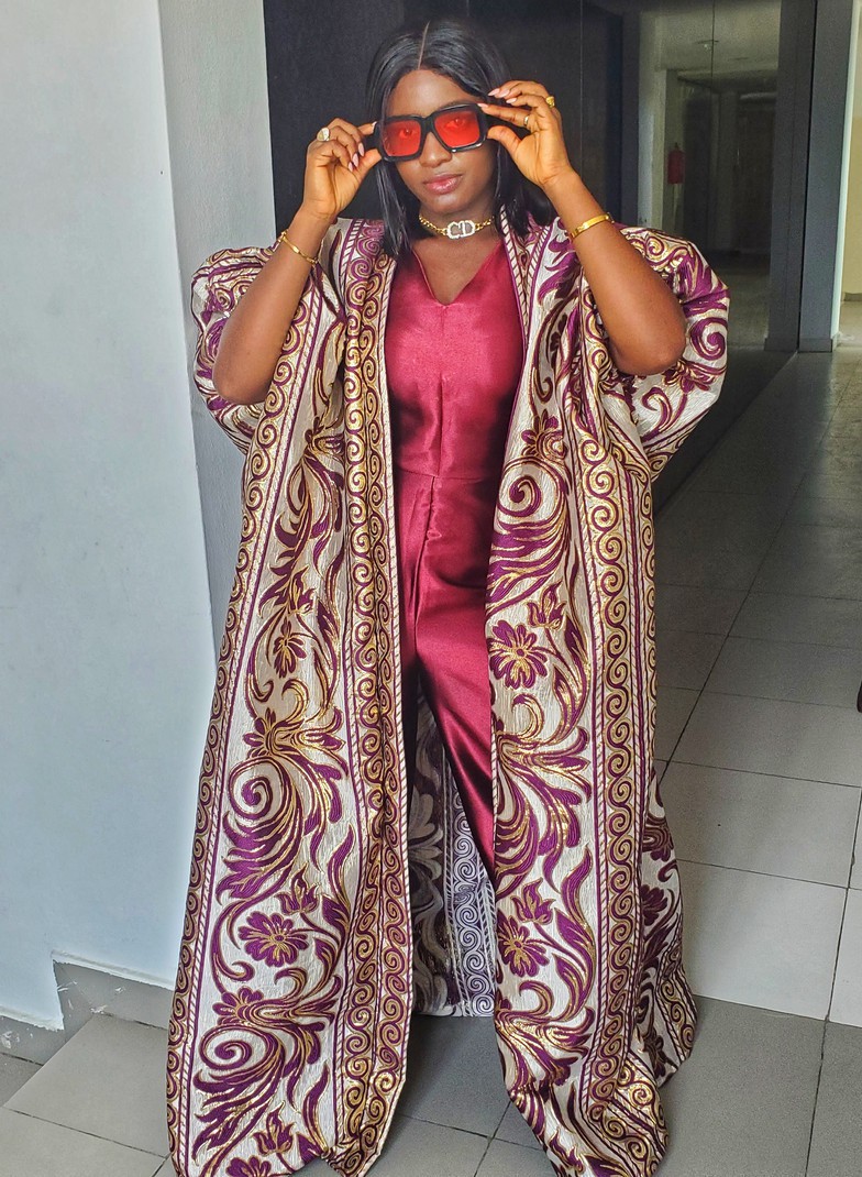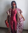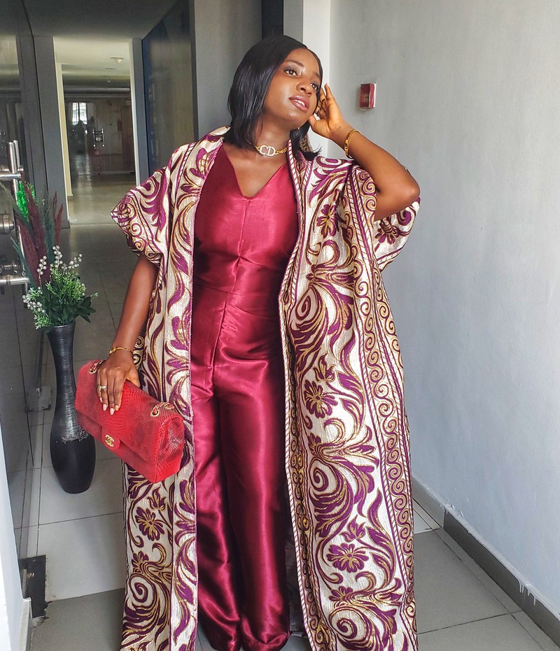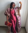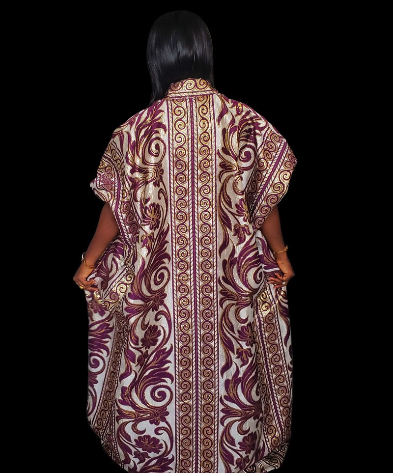 The kimono is designed as an agbada (traditional wear from Nigeria).