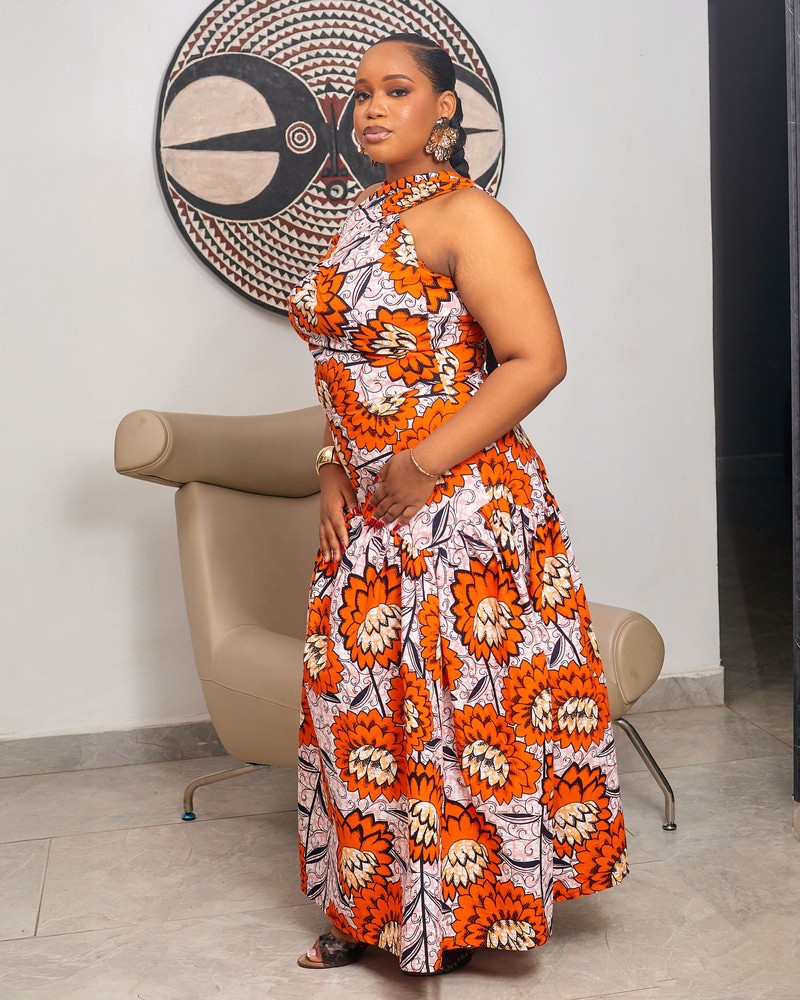 Par contre la longueur n'a pas été respectée et je n'ai pas retrouvée les manches volantes comme sur le mannequin. Les manches n'ont pas vraiment leur forme, on voit bien que vous avez pensé à plus économiser le pagne. dommage car ce sont elles qui rendent la robe plus belle et la longueur plus élégante.
