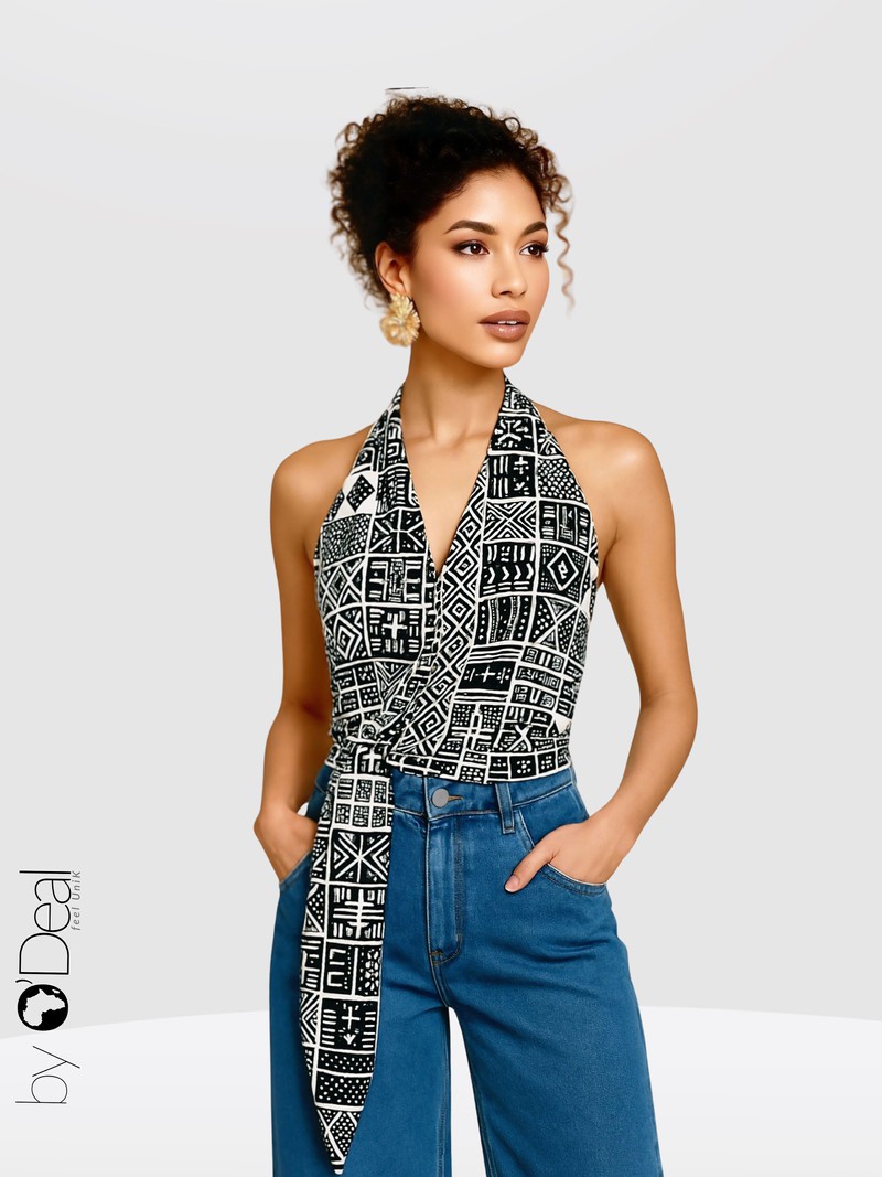 On craque pour ce top cache.coeur qui vous assurera une allure élégante dans un style unique et authentique. Il s'adapte à tous les types de vêtements, jupe, short ou pantalon et égaiera vos sorties habillées ou décontractées. Craquez et faites des sensations ! Matière : 100% soie satinée imprimé bogolan. Veuillez noter que les motifs bogolan sont aléatoires selon le stock fournisseur. Ils ne correspondent pas toujours à ceux de la photo. Couleurs : marron Vous ne passerez pas inaperçue ! Divers motifs au choix.