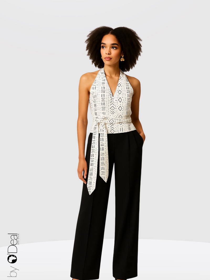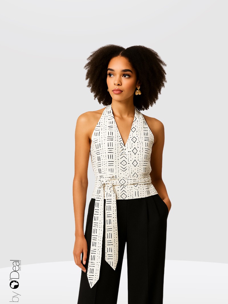 On craque pour ce top cache.coeur qui vous assurera une allure élégante dans un style unique et authentique. Il s'adapte à tous les types de vêtements, jupe, short ou pantalon et égaiera vos sorties habillées ou décontractées. Craquez et faites des sensations ! Matière : 100% soie satinée imprimé bogolan. Veuillez noter que les motifs bogolan sont aléatoires selon le stock fournisseur. Ils ne correspondent pas toujours à ceux de la photo. Couleurs : marron Vous ne passerez pas inaperçue ! Divers motifs au choix.