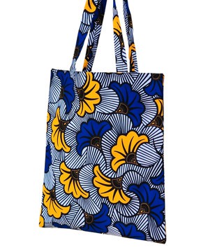 Sac à main de type Cabas en Wax motifs "fleurs de mariage" et toile de jute.