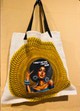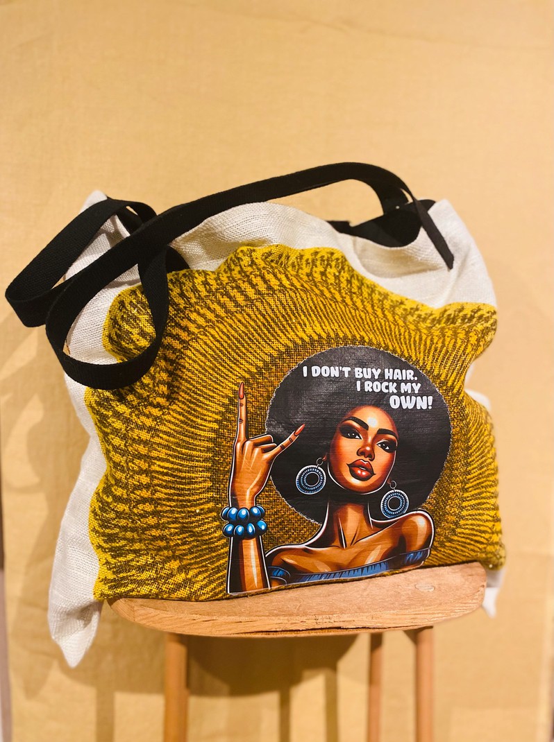 Grand sac en lin fait main entièrement avec image femme afro pièce unique 57cm