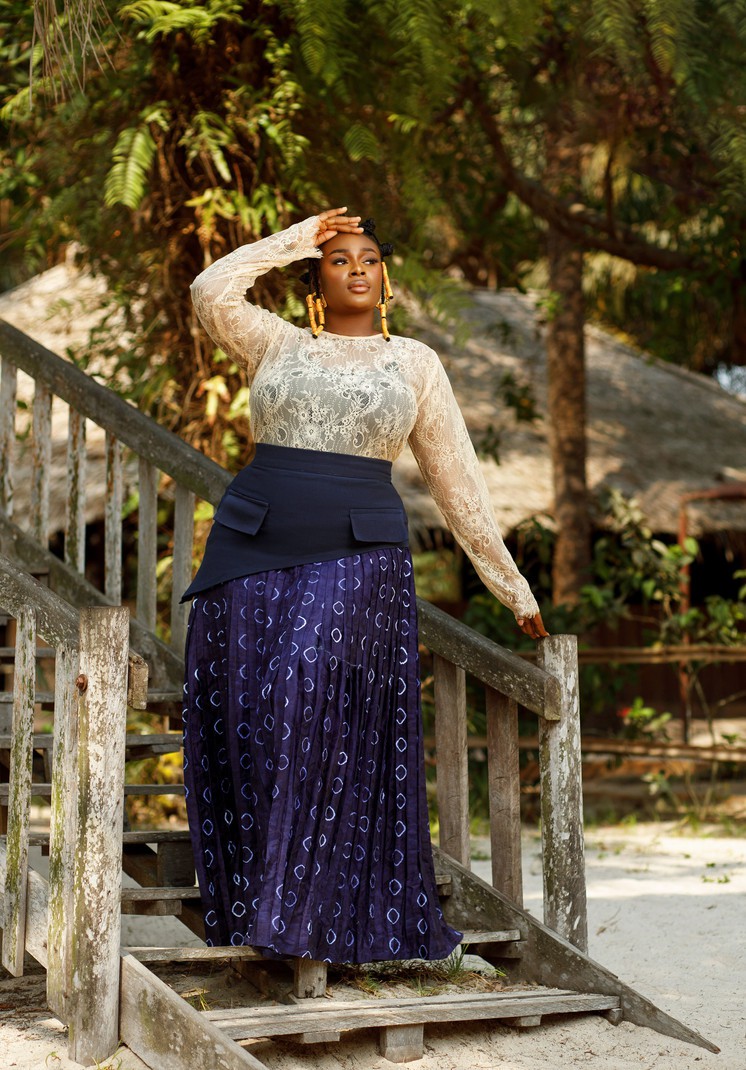 Float like a dream in TPD Immabasi Skirt Set! This stunning mix of lace and hand-dyed Adire is a love letter to elegance. Perfect for special occasions or a stylish day out, this set blends softness with structure effortlessly.