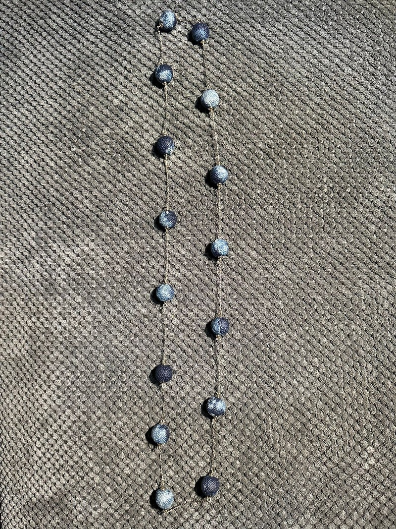 Cloth-loincloth necklace, traditional Ndop fabric from the Grassfiels countries, Bamilékés Cameroon, blue beads 925 silver findings Waterproof jewelry Length: +/- 1 meter