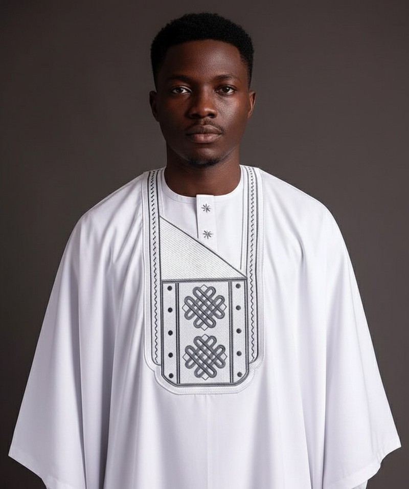 Shop our Traditional Nigerian Attire, featuring a stylish Men's White Agbada Set that exudes elegance and cultural heritage. Perfect for weddings, formal events, or celebrations, this outfit combines comfort and tradition with a modern twist. Crafted from high-quality, breathable fabric, the agbada showcases intricate patterns and tailoring, complemented by a traditional cap. Elevate your wardrobe with this timeless piece that embodies sophistication and pride. Available in various sizes for the perfect fit.