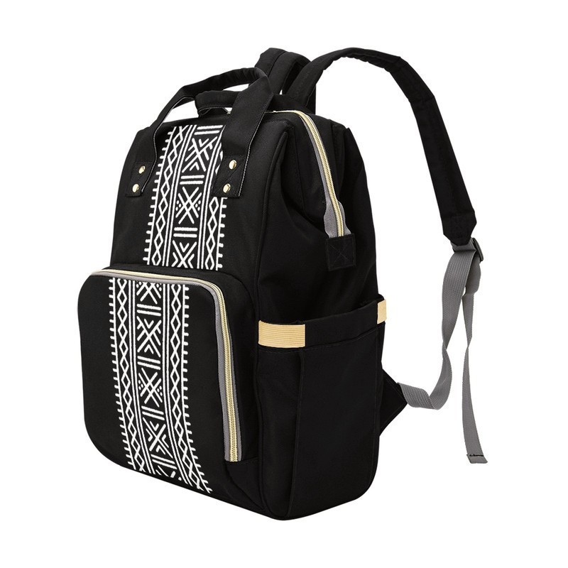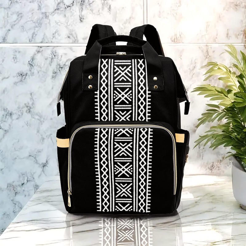 Diaper BackpackThis backpack is not just a stylish accessory, it's an embodiment of boldness and adventure! With its tribal African design, it reflects a fearless attitude towards life. Perfect for everyday use or as a diaper bag, it combines fashion and functionality to keep up with your on-the-go lifestyle. Make a statement with every step!