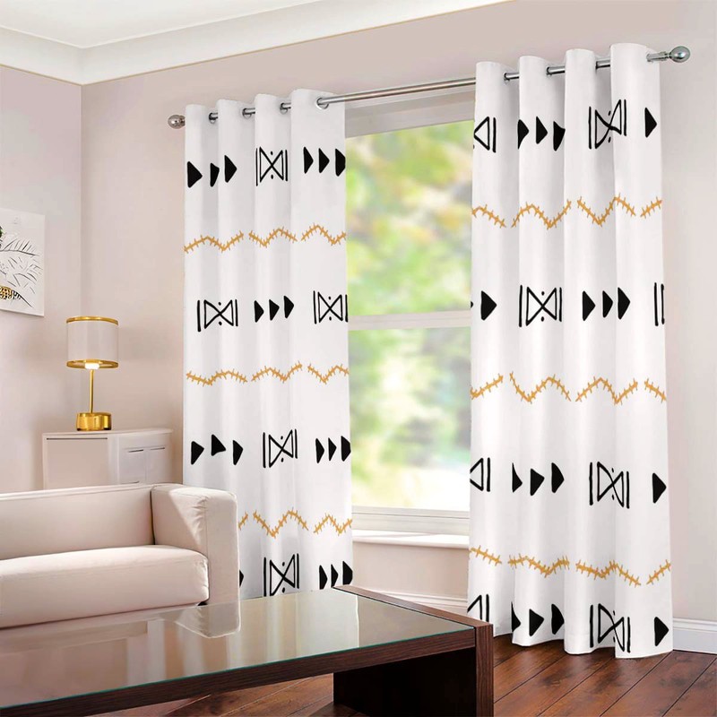 Transform your living room into a daring and adventurous space with our Tribal African Curtains. Crafted with grommets for easy hanging and a unique white tribal print, these curtains add a bold touch to any room. Elevate your decor and embrace your love for risk-taking with these curtains.