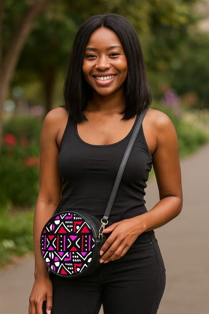 Unleash your inner tribal goddess with our African Print Crossbody Round Sling Style bag! Made from high-quality materials and featuring a unique tribal print, this bag is the perfect statement accessory for any outfit. Its crossbody design allows for hands-free convenience, while the round shape adds a fun and playful touch. Elevate your style and channel your adventurous spirit with our Tribal Bag.