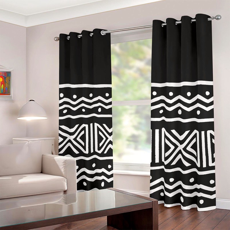 Elevate your style with our African Black and White Tribal Curtains Grommet! These two-piece curtains not only feature a striking tribal design, but also easy-to-use grommets for a hassle-free installation. Make a bold statement and add a touch of adventure to any room with these curtains.