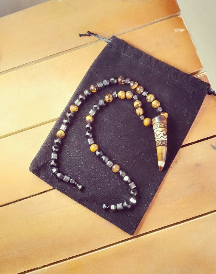 Elevate your presence with this bold, 23-inch statement necklace designed for the modern man. Handcrafted with high-quality natural stones and a striking pendant, "The Warrior's Amulet" is more than just an accessory, it's a symbol of strength and focus.