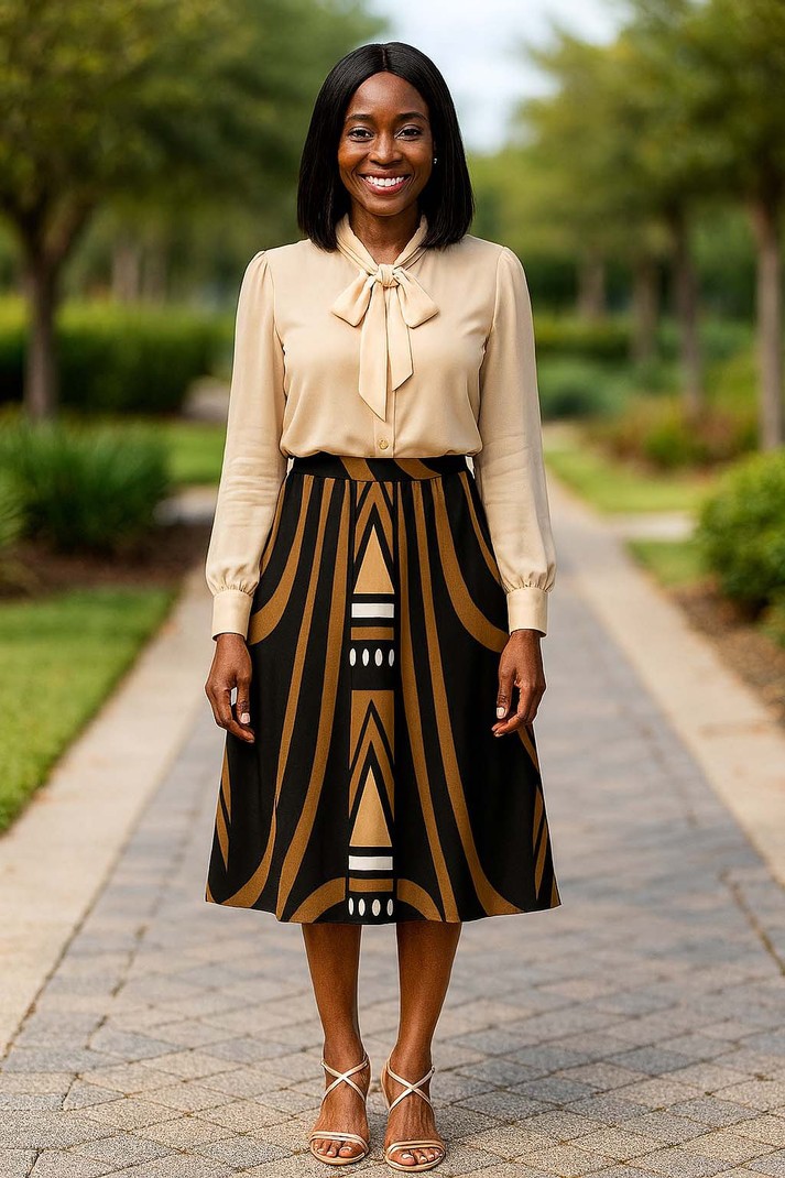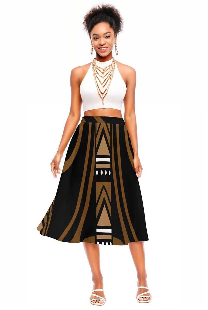 Unleash your daring spirit with our Tribal Print African Skirt! This midi length skirt features a bold and adventurous tribal print, perfect for adding some spice to your wardrobe. Embrace the native fashion trend and make a statement with this must-have piece!
