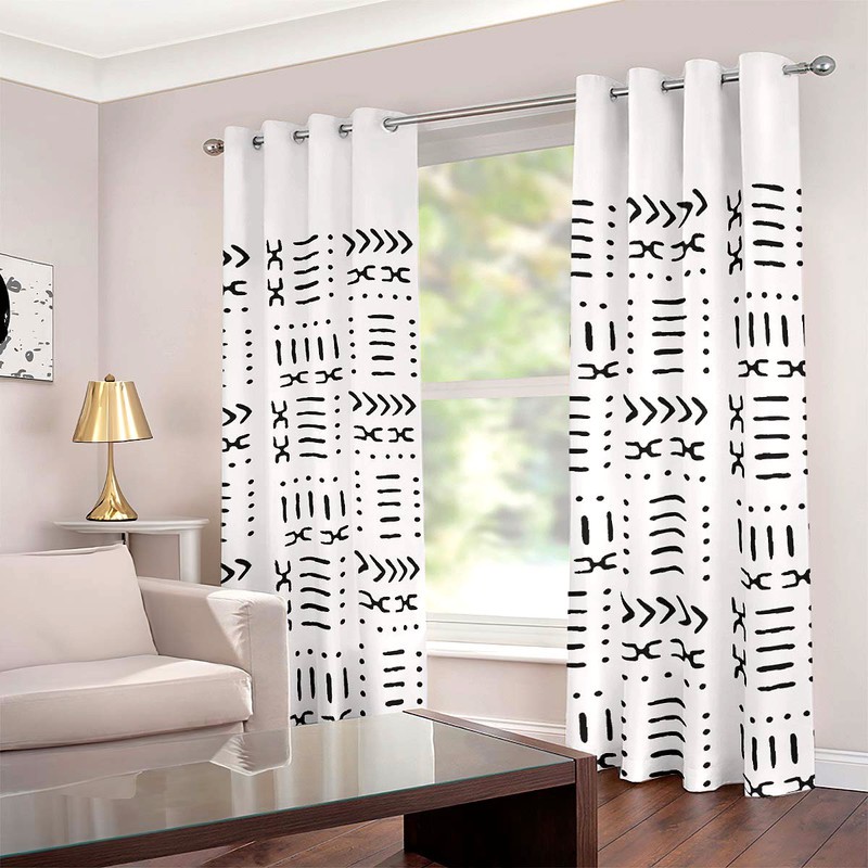 Unleash your adventurous side with these Tribal Print Curtains! Made with a bold Grommet Scissors Pattern in crisp white, these curtains bring a sense of excitement and edginess to any room. Perfect for those who like to take risks and make a statement. Includes two pieces for easy styling.