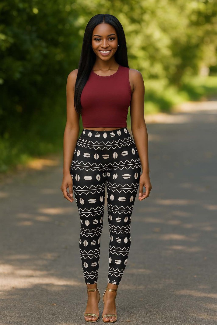 Get ready to make a statement with these Tribal Print Leggings! Featuring a bold African cowrie design in classic black and white, these leggings effortlessly combine style and comfort. Perfect for adding a touch of fun to any outfit. Product Features Please Compare your Measurements To our Size Chart before purchase • Fabric is 82% polyester, 18% spandex • Four-way stretch • Elastic waistband • Precision-cut and hand-sewn • Fabric weight: 6.61 oz/yd² (224 g/m²) • 38-40 UPF • Overlock and coverstitch • Printed, cut, and hand-sewn by our in-house team • Four-way stretch, which means fabric stretches and recovers both on the cross and lengthwise grains • Made of a microfiber yarn, which is smooth and comfortable Delivery Time This item will be processed within 3-7 business days (Excluding Weekends and Holidays). Once products ships it can take up to 15 Business days depending on your location. Out of Stock items can be requested by emailing us at [email protected] Care Instructions Machine wash cold inside out. Gentle cycle with mild detergent and like colors. Do not use bleach or fabric softener. Do not tumble dry. Hang to dry to ensure maximum shelf life. Iron inside out if necessary. Do not iron the print. Do not dry clean.