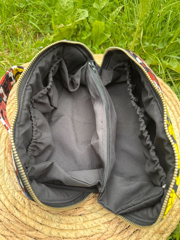 Trousse de Toilette Rectangulaire en Wax – Fermeture Diagonale Apportez une touche d'originalité et de couleur à vos essentiels de voyage avec cette trousse de toilette en wax 100% coton. Son format rectangulaire pratique et sa fermeture zippée en diagonale offrent à la fois style et fonctionnalité. 💎 Avantages : • Tissu naturel et agréable au toucher • Design unique avec en biais • Idéale pour ranger vos produits de soin, maquillage ou accessoires Parfaite à glisser dans un sac de voyage ou à exposer dans la salle de bain, cette trousse allie artisanat, élégance et praticité. 💎 Ankara Dimensions Longueur: 21cm Hauteur : 13,5cm +++++ Cette trousse existe dans d'autres motifs