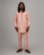 Confectionné dans un tissu doux couleur rose poudré, cet ensemble se distingue par la délicatesse de ses finitions et la finesse de ses détails : un contour de col et une bordure de poche en cuir marron, subtilement contrastés, qui lui confèrent une touche de distinction unique.