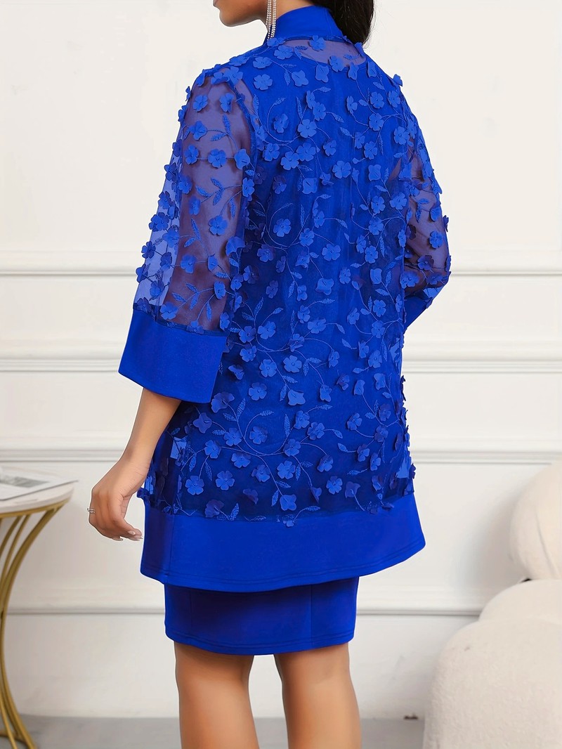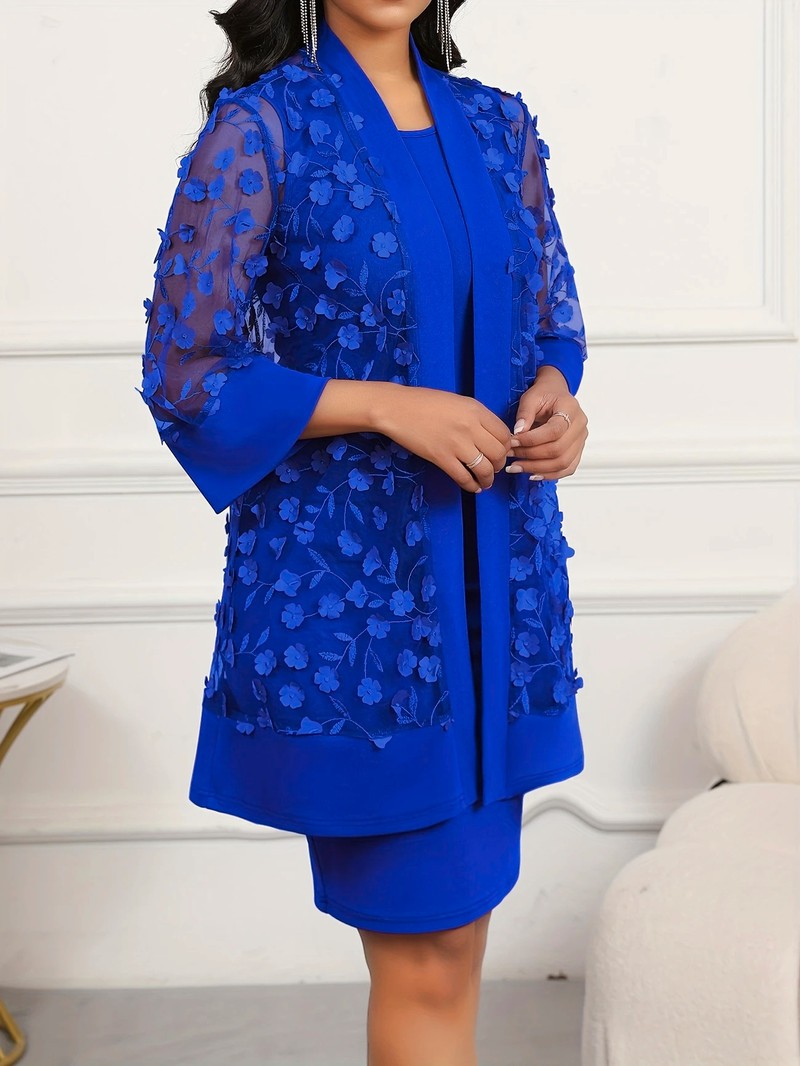 Two-piece Dress with Contrast Lace Patchwork for Fashionable Women with Elegant and Pure Color