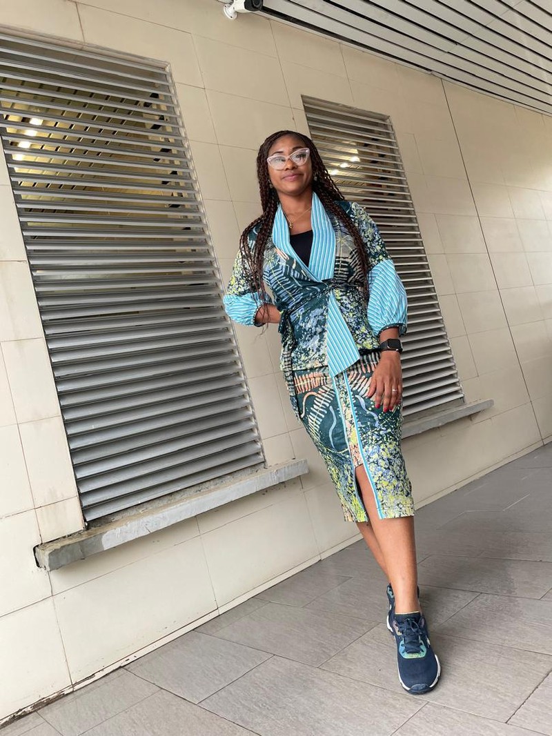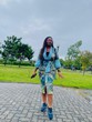 This 2 piece skirt and blouse is a combination of Adire and shirt fabric ti make a really bold statement.
