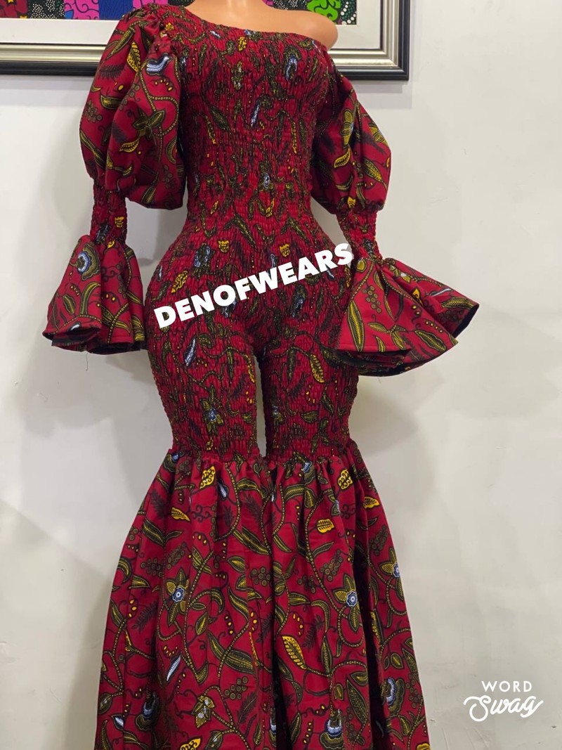Unique African print jumpsuit . Smocked Ankara jumpsuit . Ankara fashion. Bell pant jumpsuit