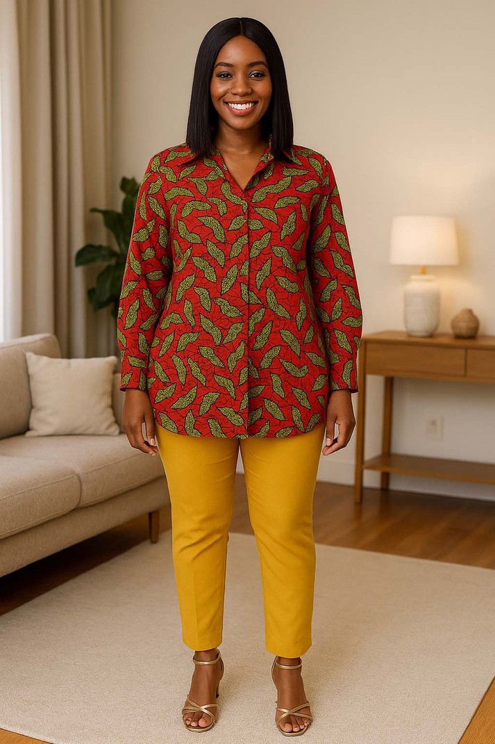 Celebrate your heritage with these unique African print shirts designed exclusively for women. Each shirt blends traditional patterns with a modern twist, offering a stylish way to express your cultural pride. Crafted for comfort and versatility, these shirts are perfect for everyday wear or special occasions, helping you stand out while honoring timeless African artistry. Embrace your roots with confidence and style.