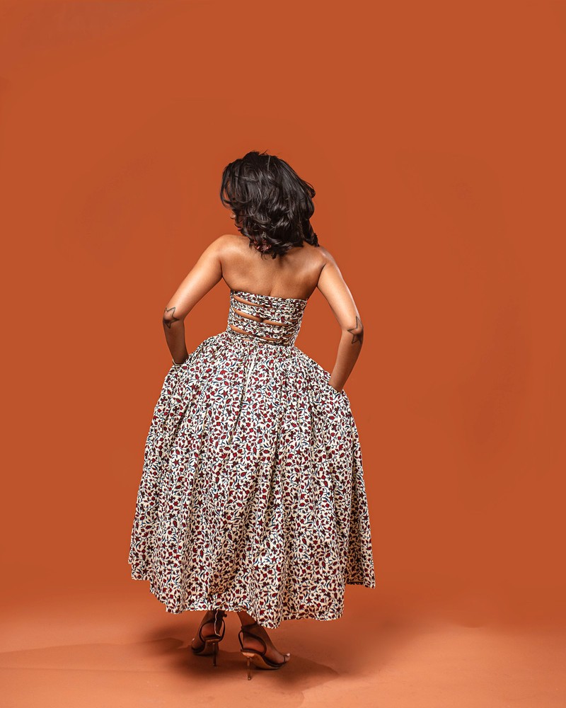 Maxi robe en wax. Elle peut se porter pour des sorties casuelles comme pour des événements plus cérémonials.