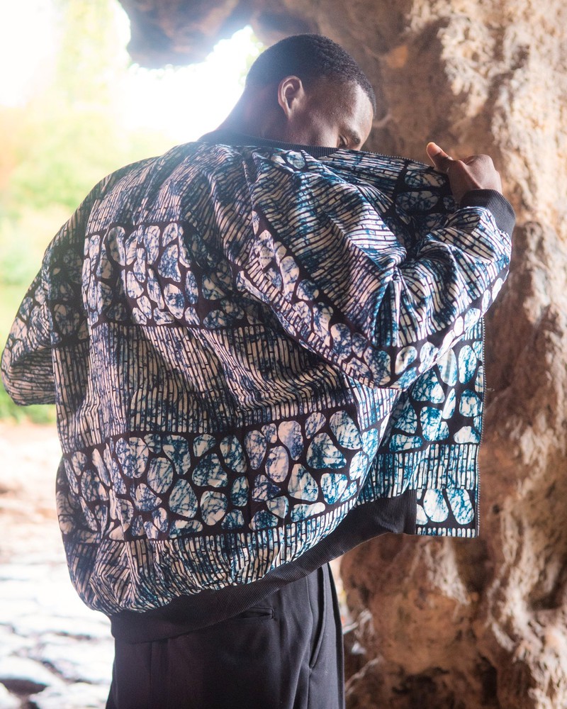 Affirme ton style avec cette veste bombers en wax, un mélange parfait entre mode urbaine et élégance africaine.
