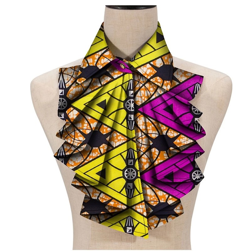 Vibrant Ankara Print Women'S Necktie - Elegant Polyester Neck Collar with Colorful Geometric Patterns, Hand Washable, Stylish African-Inspired Accessory for Casual or Formal Occasions, Secure Neckwear | Vibrant Pattern Collar | Texture, African Collar