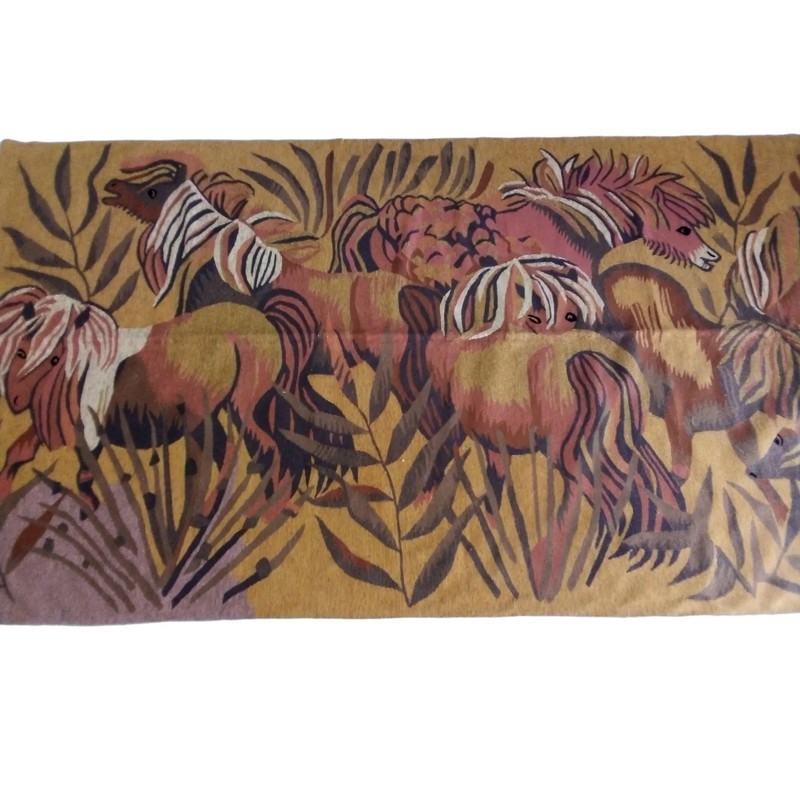 Vintage Handwoven wall hanging tapestries features dancing horses folowing the nomad's fantasia.