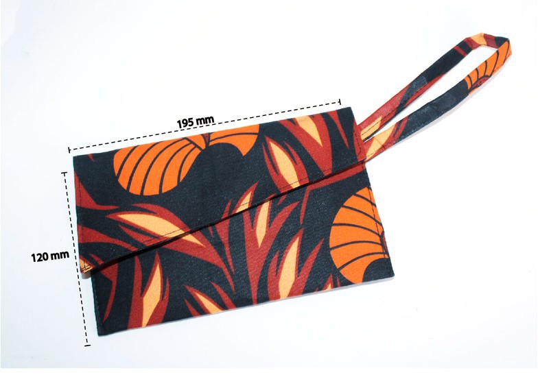 Introducing our stylish and versatile wristlet bag, beautifully crafted with warm toned Autumn Leaves Ankara cotton fabric. This eye-catching design combines traditional African prints with contemporary fashion, making it a perfect statement accessory for any occasion.