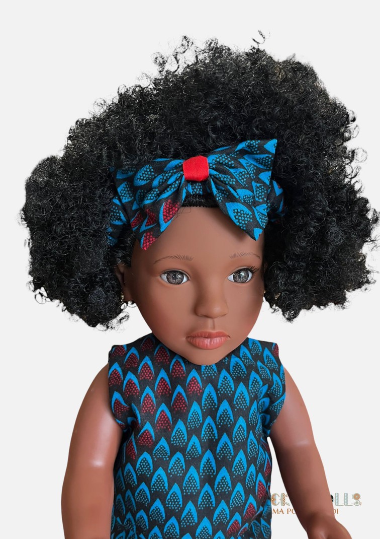 ces Poupées « Princesses du Walo » a la peau noire et des cheveux noirs bouclés. Elles ont été conçues avec amour pour le plus grand bonheur de vos enfants. De plus, les soeurs Poupées « Princesses du Walo » prend soin des ses amies et leur porte beaucoup d’attention. Mais encore, elles représentent l’identité de petites filles noires habillées en robes Wax et coiffées juste avec des choux surmontés de noeud. Elles sont les symboles d’une belle ouverture et d’un ancrage culturel!